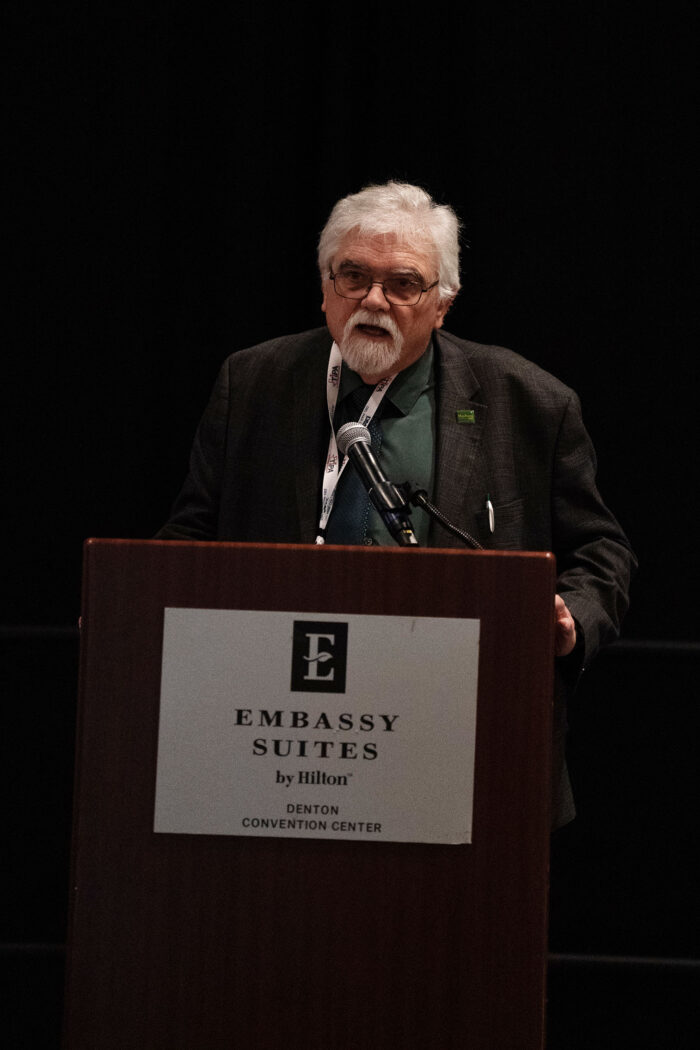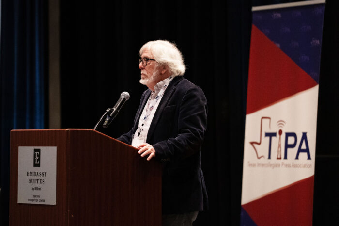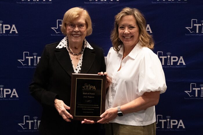 Doug Pils, director of student media at Baylor University, announces the 2026 Hall of Fame inductees: Judy Walgren and Bettye Craddock.